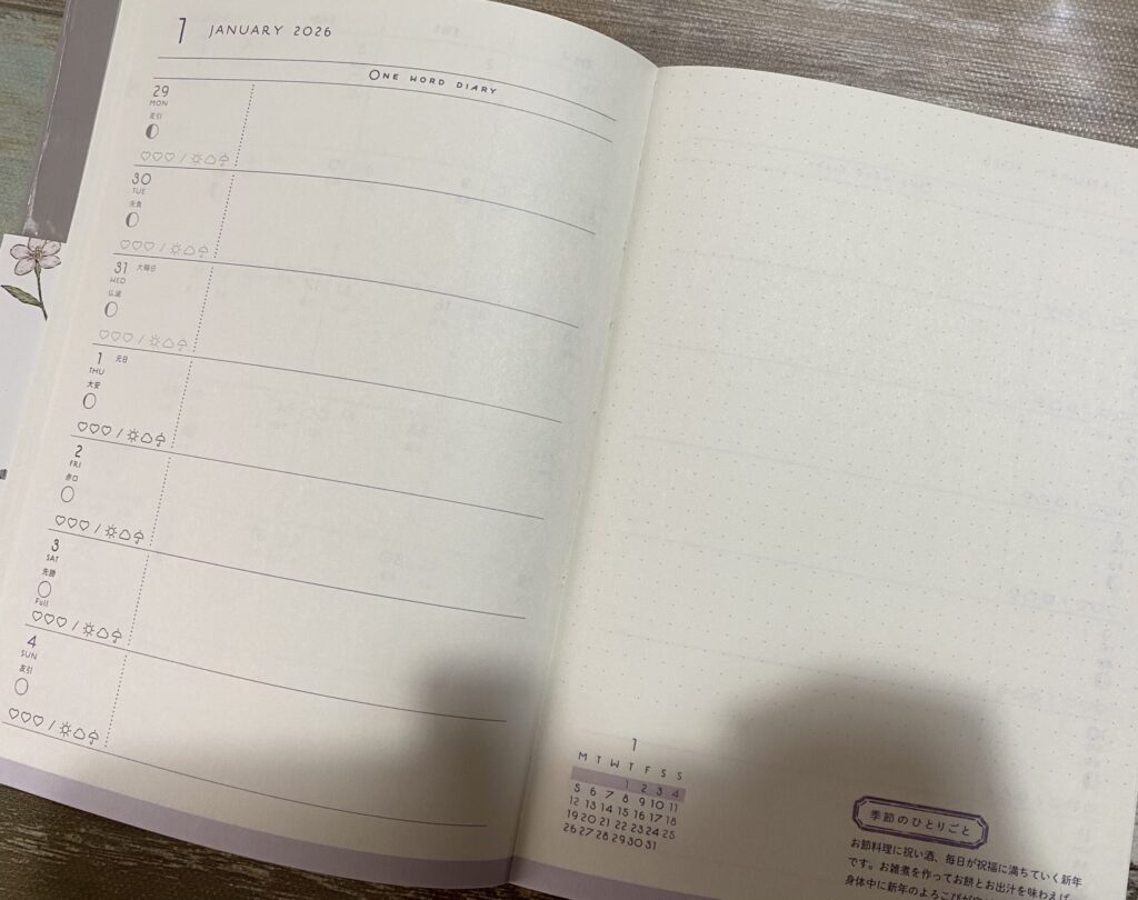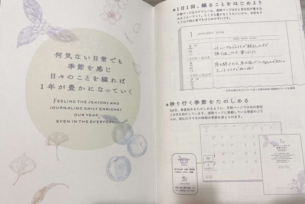前回に続いてご紹介する手帳は、「季節を感じて日々を綴る 暮らし手帳2026」です。