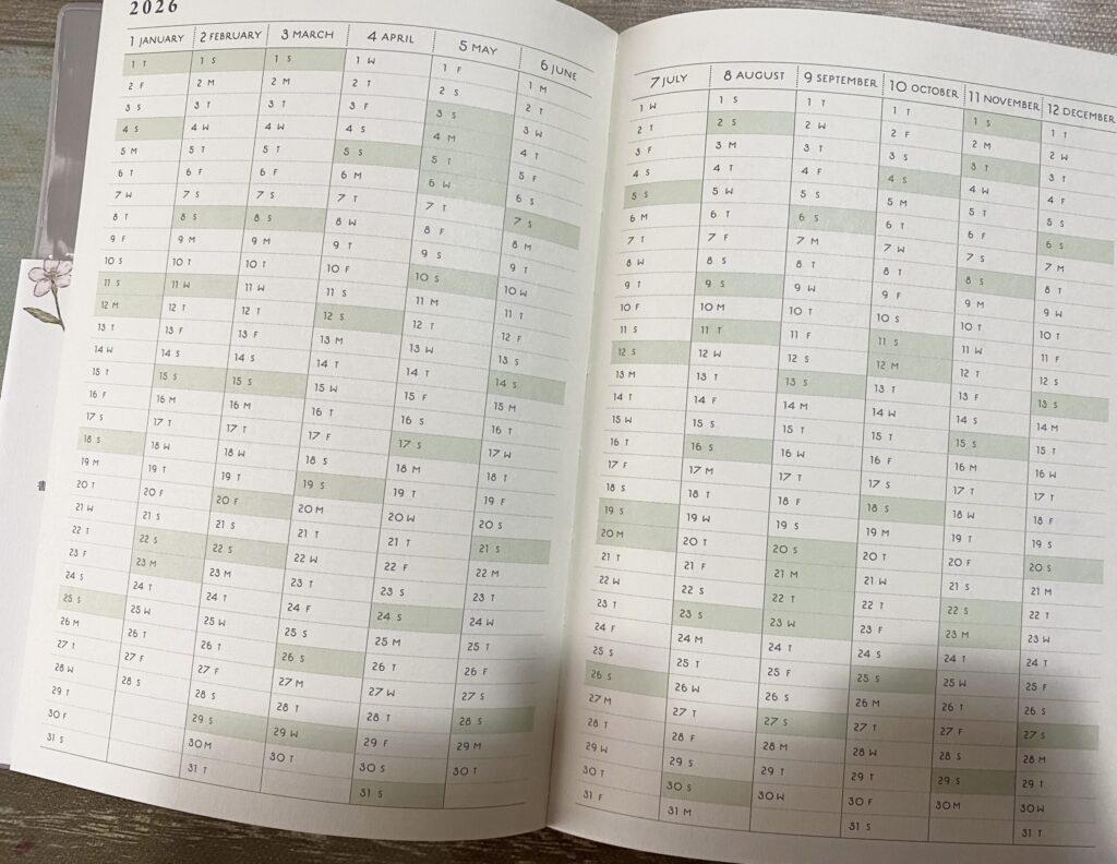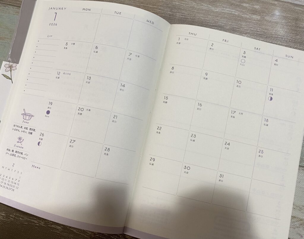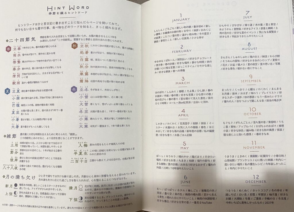 この手帳には、季節を感じられる小さなヒントが散りばめられています。